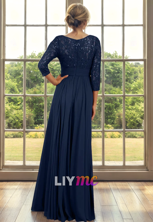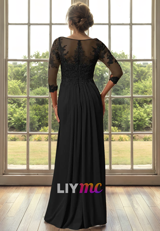 Scoop Half Sleeves Chiffon Appliques Long Mother of Bride Dress