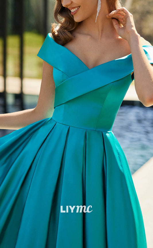M1304 - Off-Shoulder Long Sleeves Appliques A-Line Pleated Mother of Bride Dress Cocktail Dress