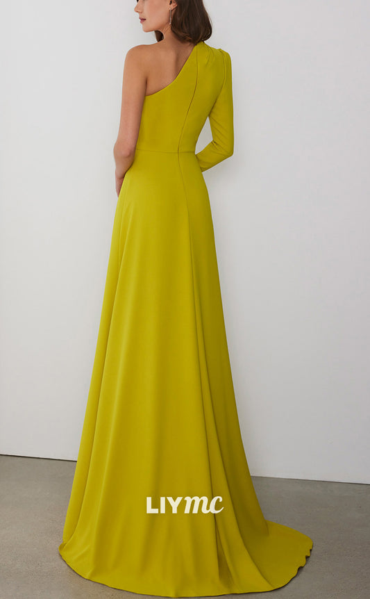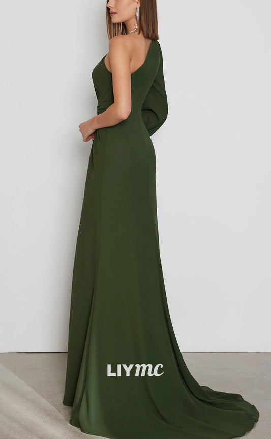 M1264 - Asymmetrical Long Sleeves Ruched Pleated High Slit Sleek Mother of Bride Dress Cocktail Dress
