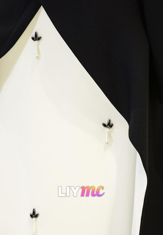 High Neck Beaded Black White Ruffled Sheath Evening Dress