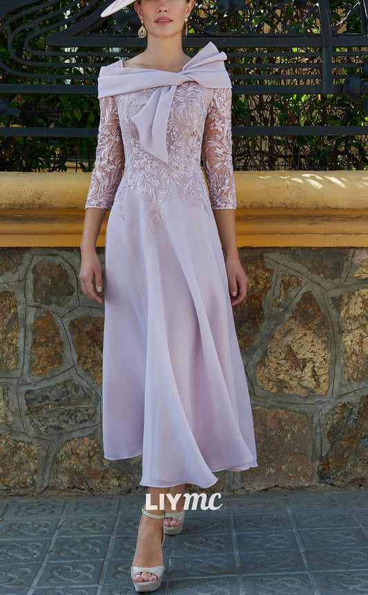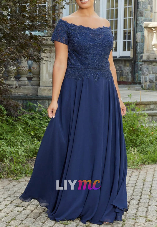 Off-Shoulder Short Sleeves Appliques A-Line Mother of Bride Dress