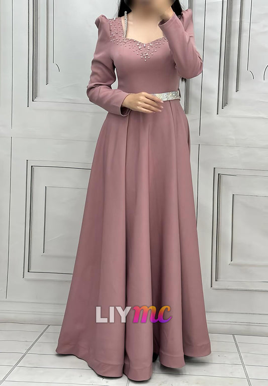 Sweetheart Long Sleeves Beaded A-Line Belt Mother of Bride Dress