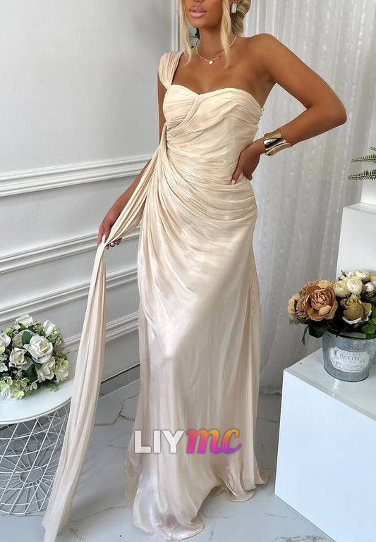 One Shoulder Ruffled High Low A-Line Evening Dress
