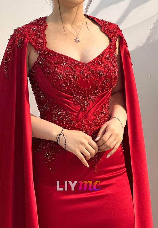 V-Neck Appliques Fitted Sleeveless Sheath Evening Dress