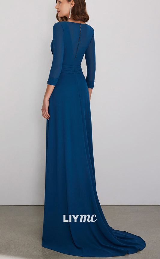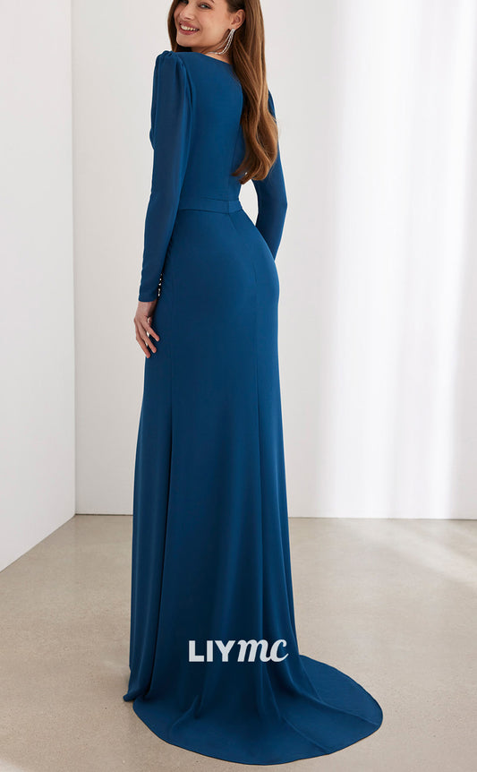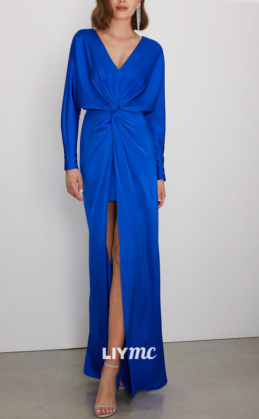 M1263 - V-Neck Long Sleeves Pleated Mermaid High Slit Mother of Bride Dress Cocktail Dress