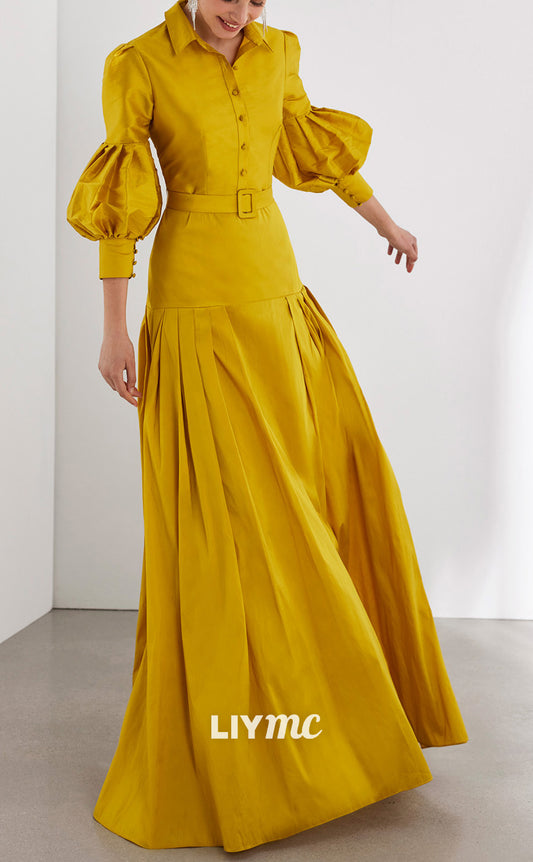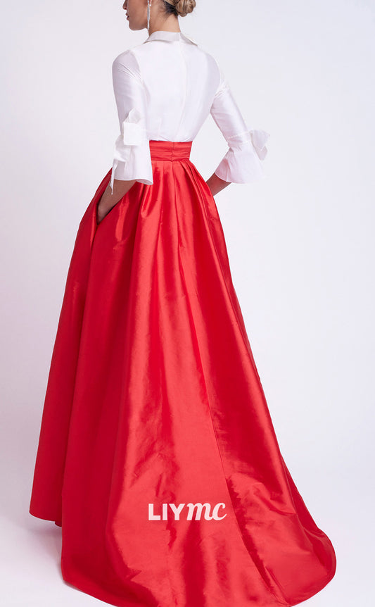 M1262 - V-Neck Long Sleeeves Pleated Long A-Line Mother of Bride Dress Cocktail Dress