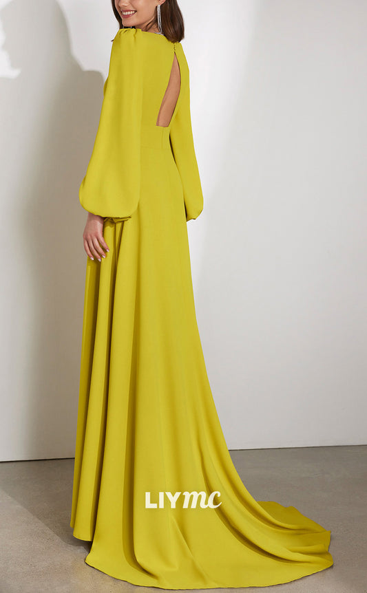 M1272 - V-Neck Long Sleeves High Slit Sleek Satin Mother of Bride Dress Cocktail Dress