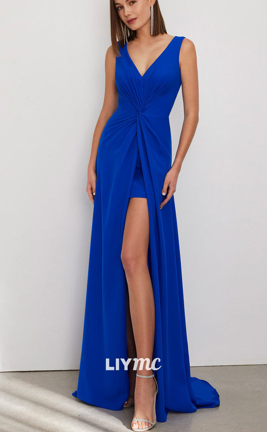 M1273 - V-Neck Sleeveless Pleated High Slit Mother of Bride Dress Cocktail Dress