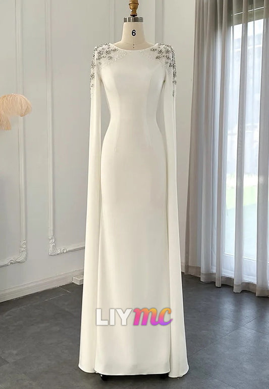 Scoop Sleek Beaded Long Sleeves Sheath Evening Dress