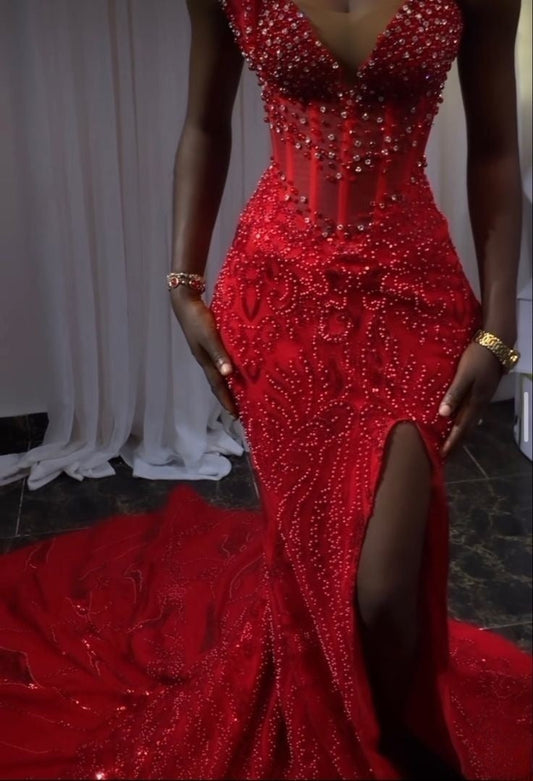 Stunning Red Mermaid Prom Gown Evening Dress for Women