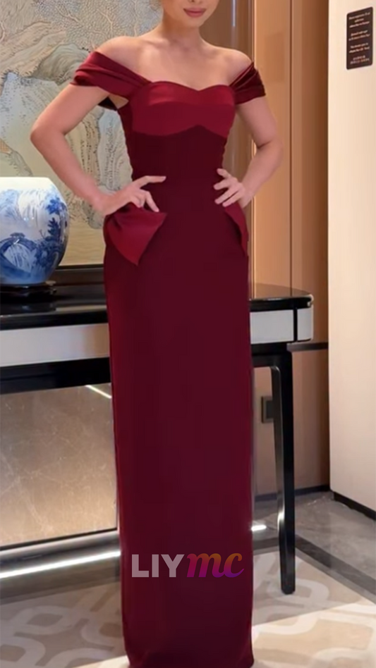 Off-Shoulder Side Slit Pleated A-Line Flowy Evening Dress