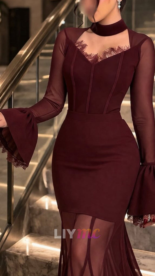 High Neck Long Sleeves Mermaid Evening Dress