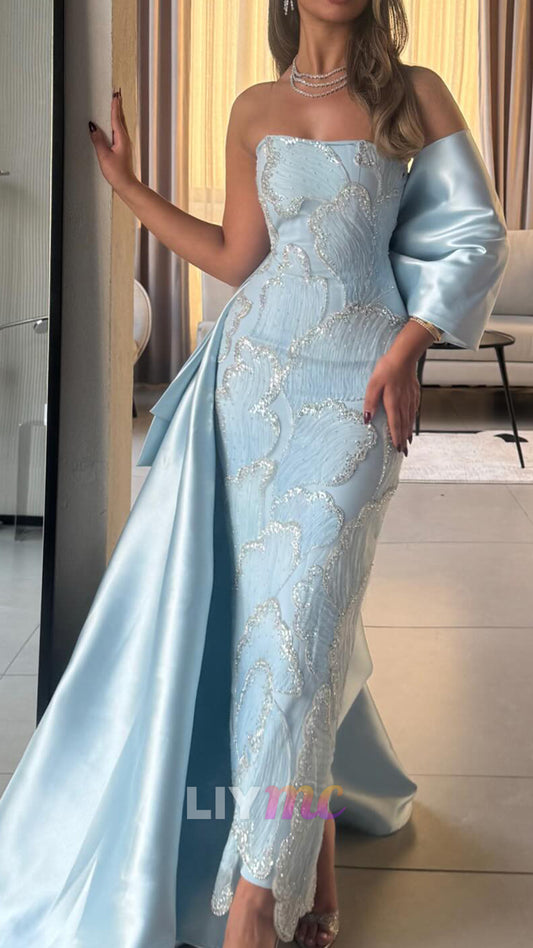 Strapless Long Sleeves Mermaid Black Evening Dress