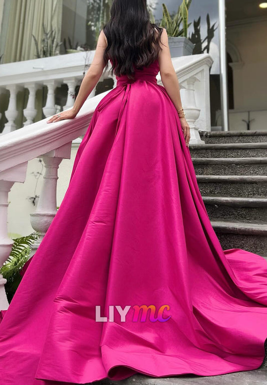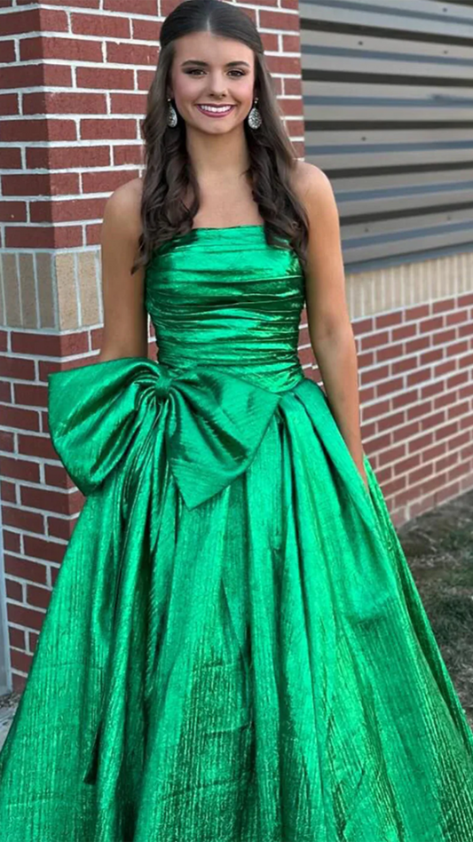 Straight Across Sleeveless Bowknot A-Line Prom Dress
