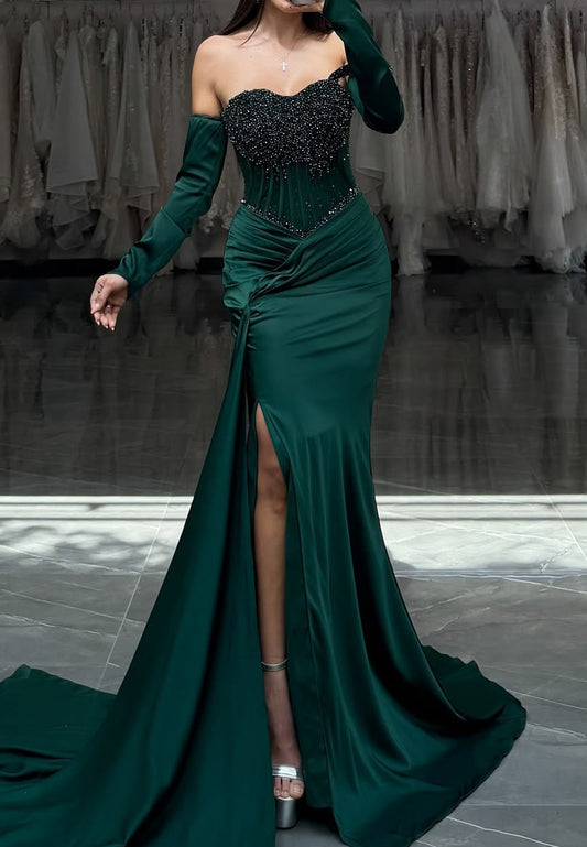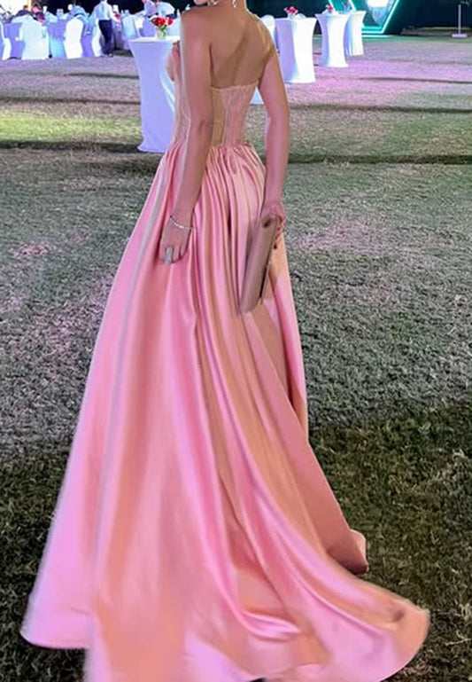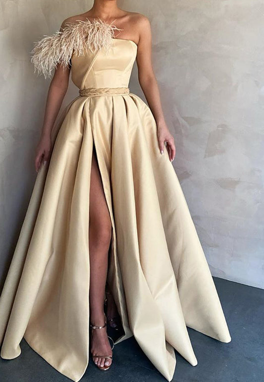 Off-Shoulder Strapless Side Slit Prom Dress A-Line Evening Dress