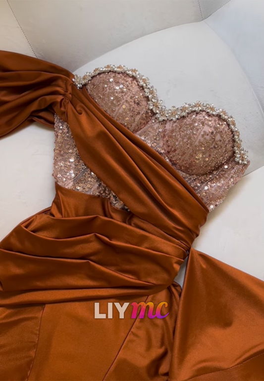 Asymmetrical Straps Sleek Beaded Evening Dress Mermaid Prom Dress