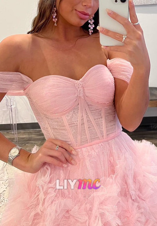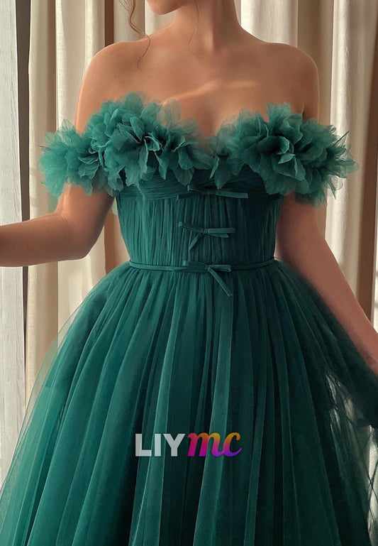 Off-Shoulder Strapless Floral Tulle Prom Dress A-Line Party Dress