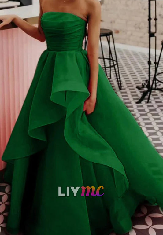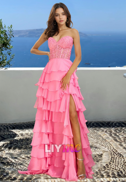 Sweetheart Strapless Tiered Pleated A-Line Prom Dress