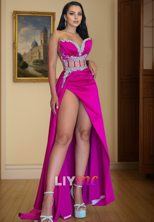 Semi-Sweetheart Strapless Side Slit Ruched Sheath Prom Dress