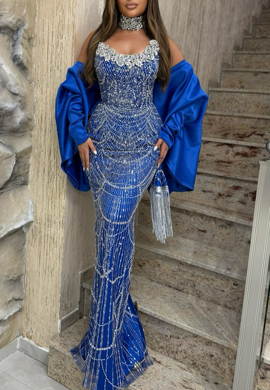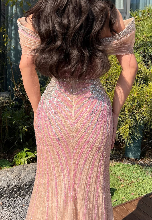 Off-Shoulder Sleeveless Beaded Sparkly Mermaid Prom Dress