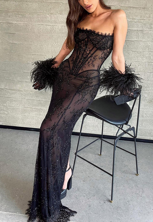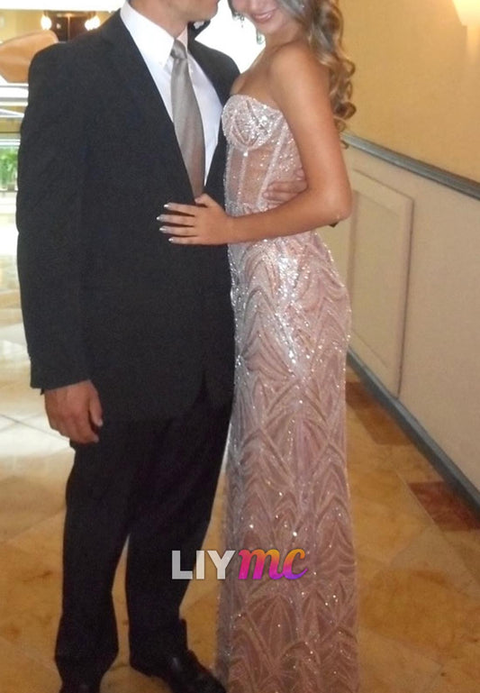 Sweetheart Strapless Beaded Embroidery Sheath Prom Dress