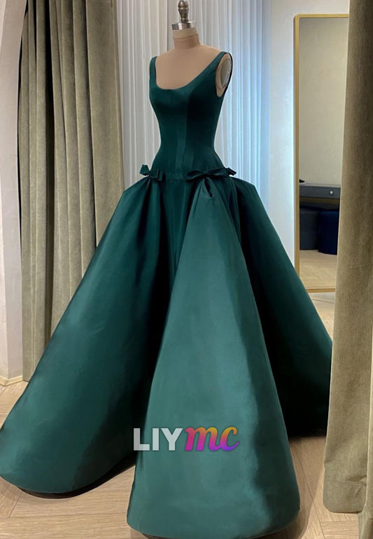 Scoop Straps Bowknot Satin A-Line Evening Dress
