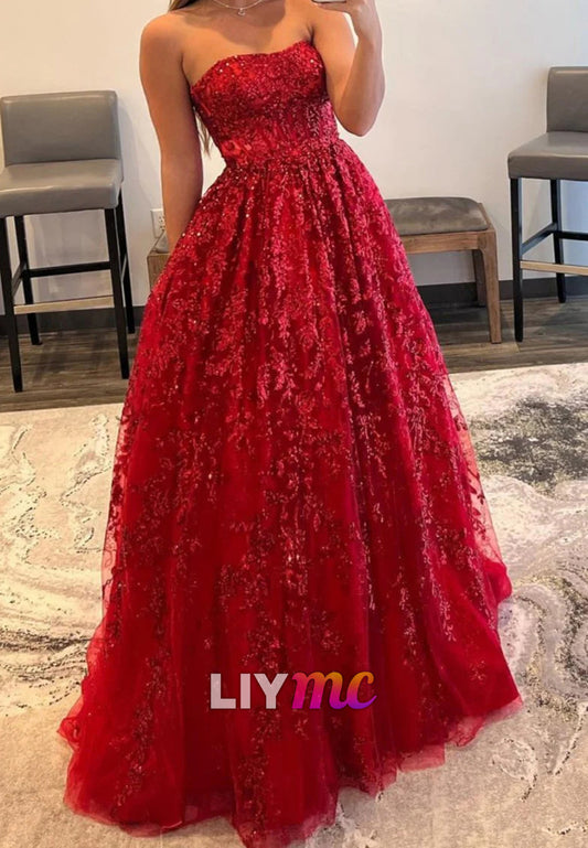 Sweetheart Strapless Apppliques Sequins Party Dress Pleated Prom Dress