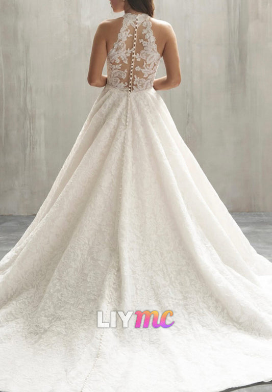 Halter Sleeveless Lace Appliques A-Line Wedding Dress