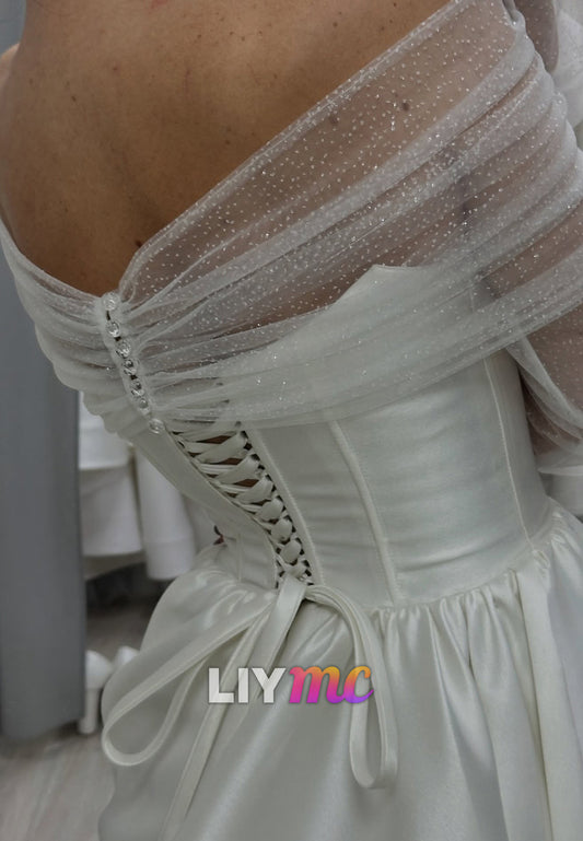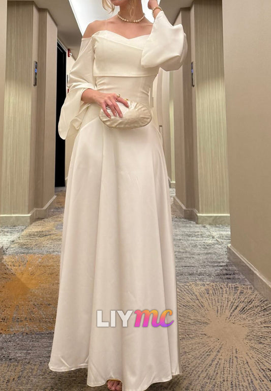 Off-Shoulder Long Sleeves Satin A-Line Simple Wedding Dress