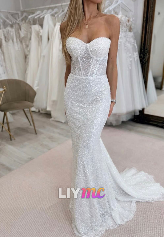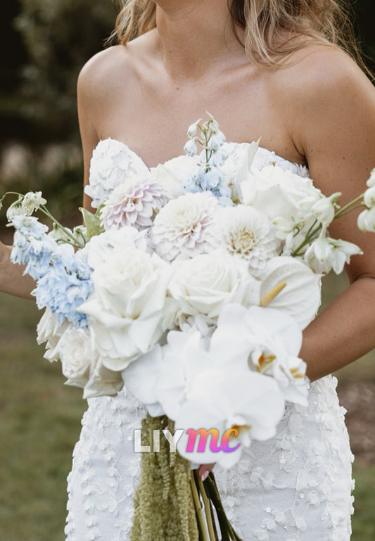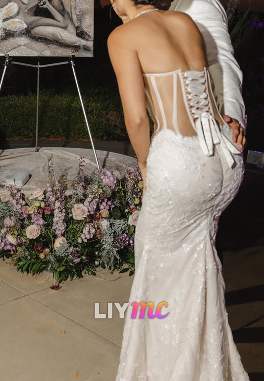 Sweetheart Strapless Floral Appliques Mermaid Wedding Dress