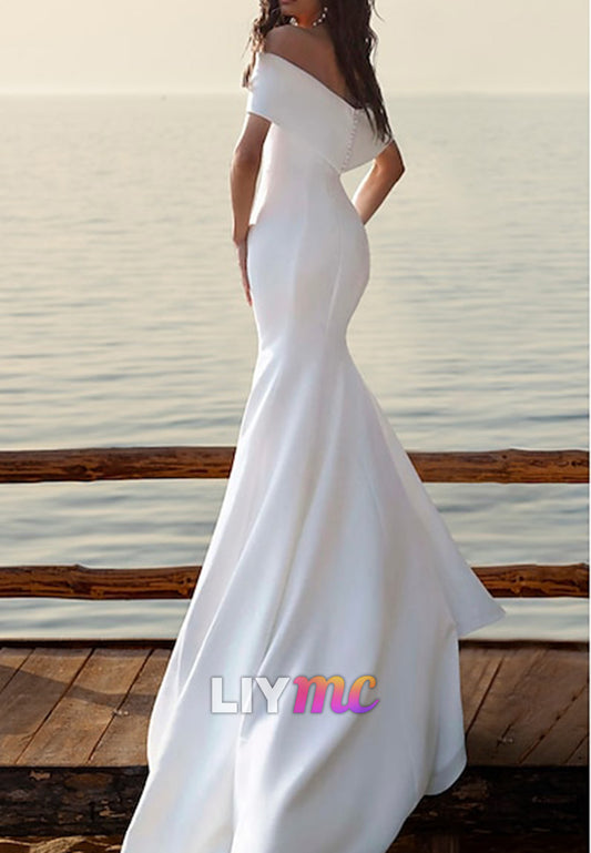 Off-Shoulder Sleeveless Fitted Sleek Mermaid Wedding Dress