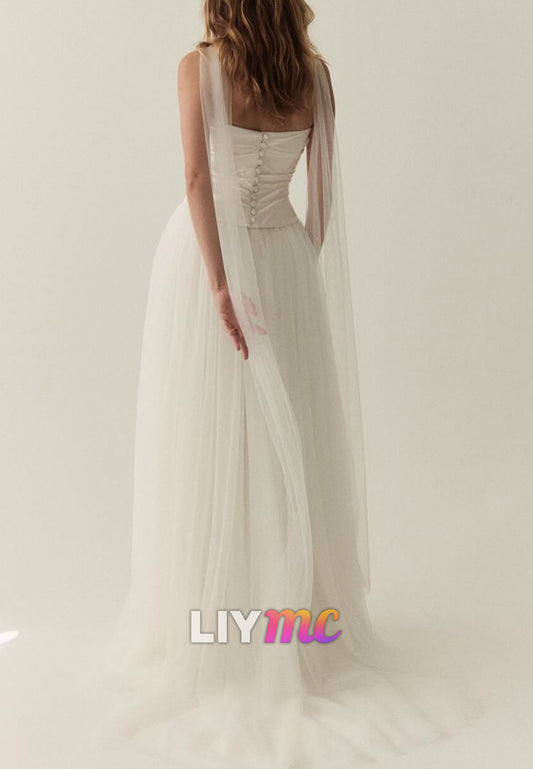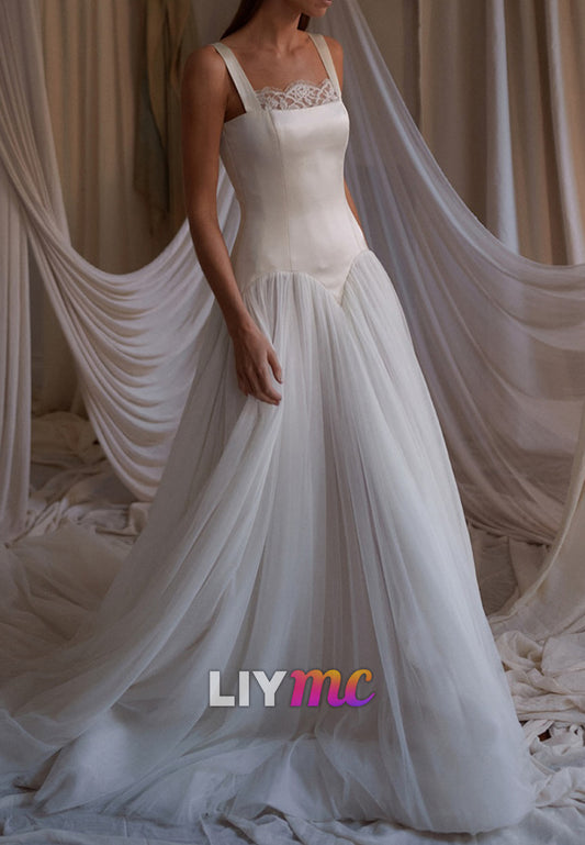 Square Straps Corset Tulle Ball Gown Wedding Dress