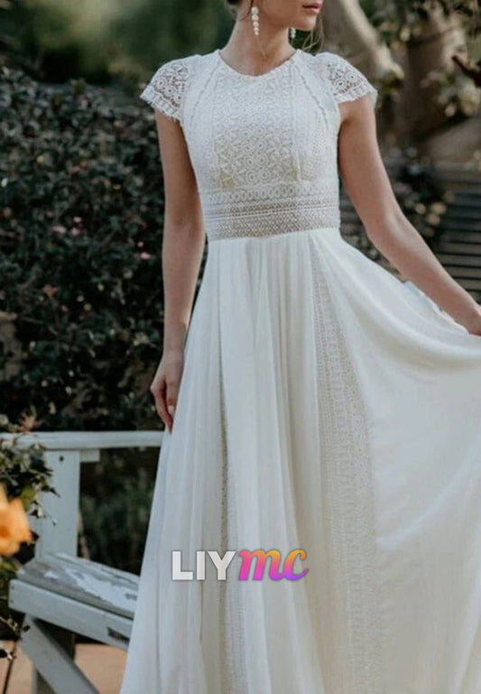 Scoop Cap Sleeves Lace Appliques A-Line Boho Wedding Dress