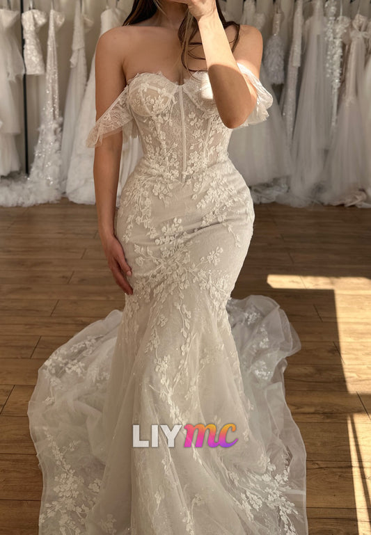 Off-Shoulder Sleeveless Appliques Mermaid Wedding Dress