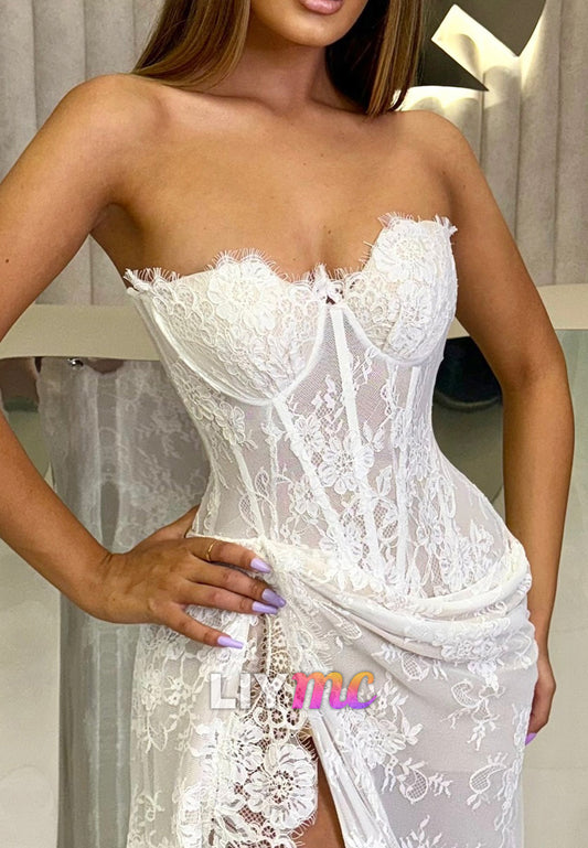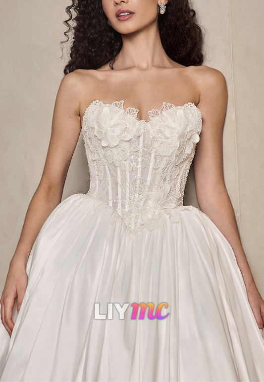 Sweetheart Strapless Lace Appliques Corset A-Line Wedding Dress