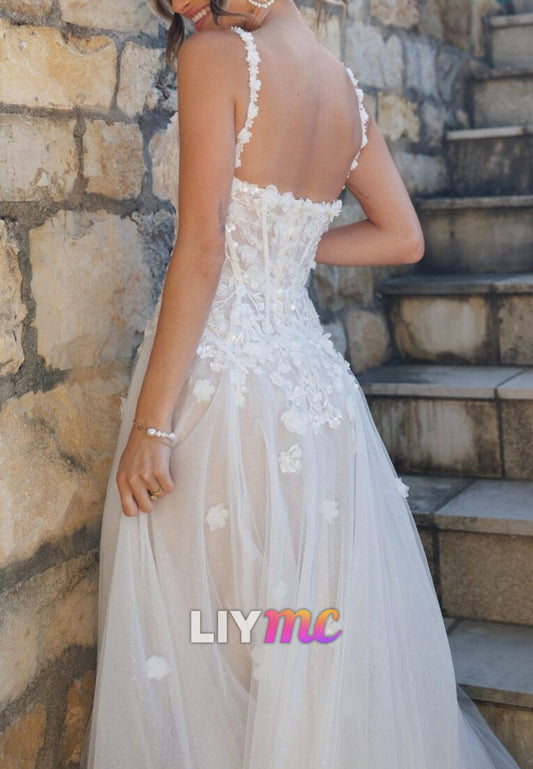 Sweetheart Straps Floral Appliques A-Line Wedding Dress