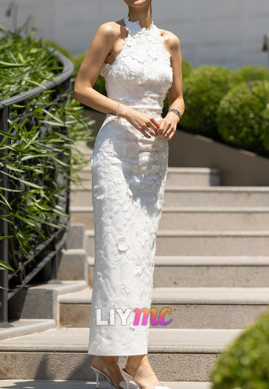 Halter Sleeveless Appliques Sheath Vintage Wedding Dress