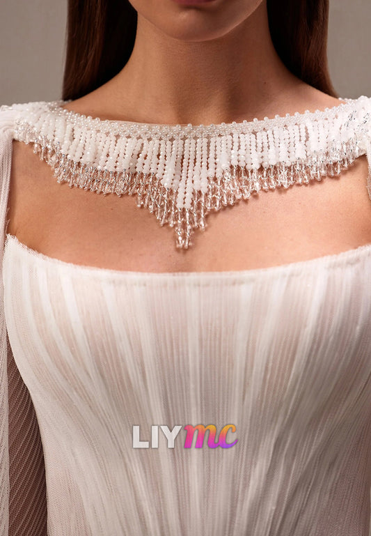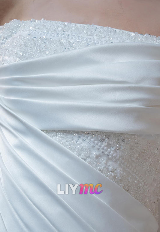 Off-Shoulder Beaded Sleeveless Mermaid Satin Wedding Dress