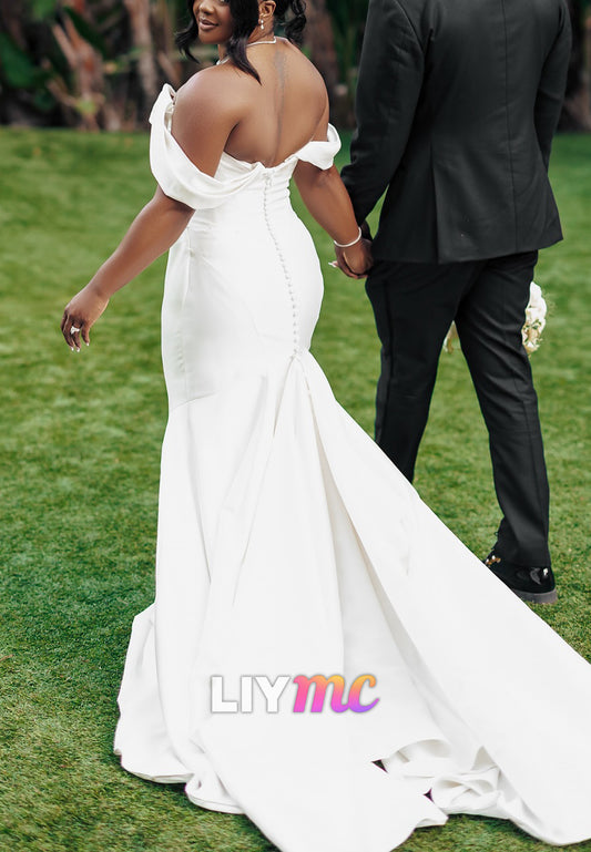 Off-Shoulder Sleeveless Sleek Mermaid Wedding Dress