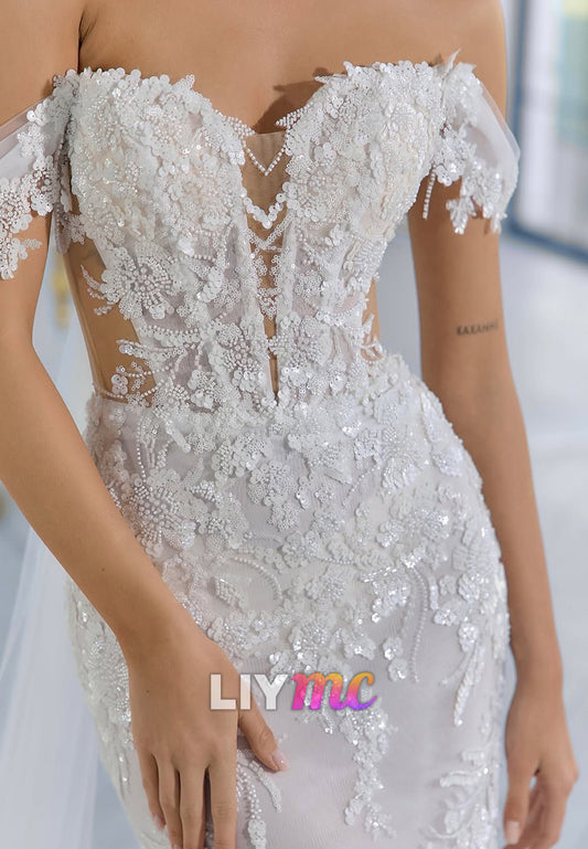 Off-Shoulder Sequins Appliques Mermaid Wedding Dress