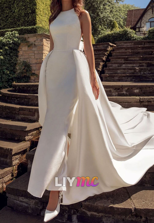 Scoop Sleeveless Detachable Train Mermaid Wedding Dress
