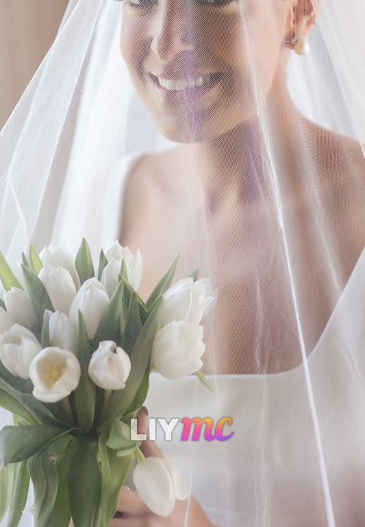Off-Shoulder Tulle Pearl Sequins A-Line Wedding Dress