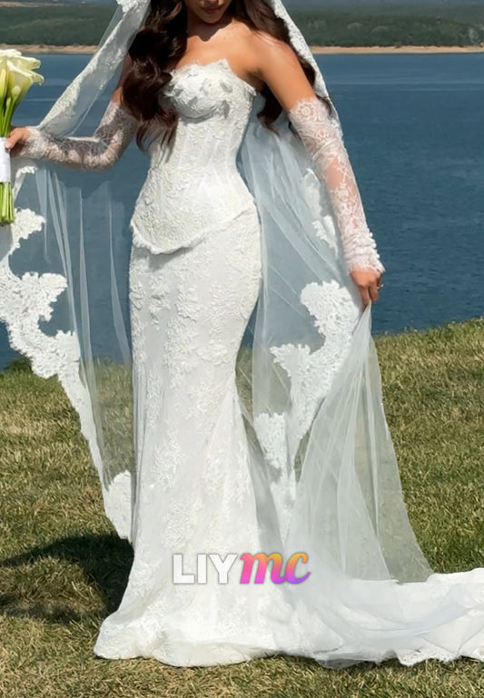 Sweetheart Strapless Lace Appliques Mermaid Wedding Dress