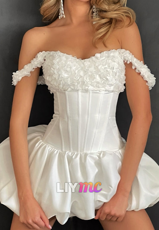 Off-Shoulder Ruffled Appliques A-Line Short Wedding Dress