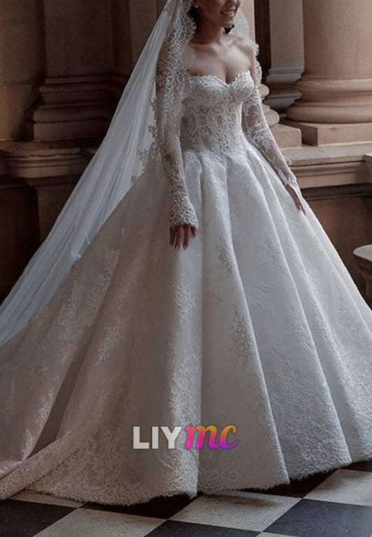 Sweetheart Long Sleeves Lace Appliques Mermaid Wedding Dress