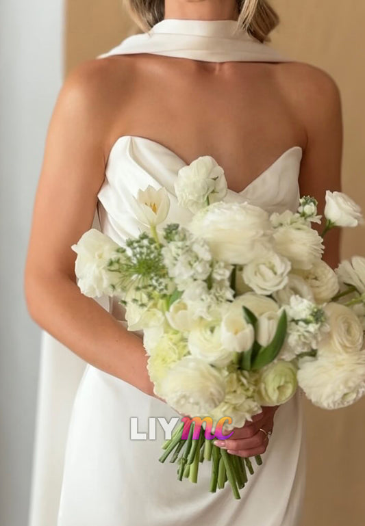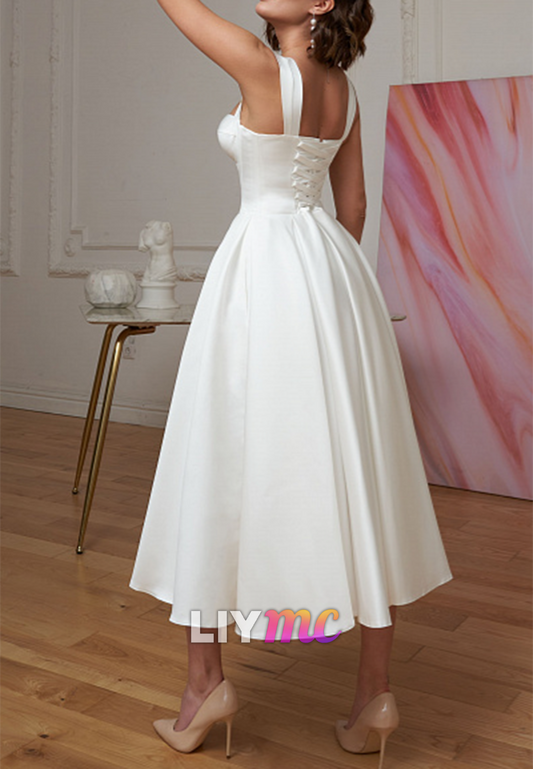 Sweetheart Straps Sleek Pleated A-Line Midi Wedding Dress