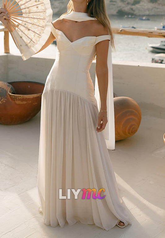 Off-Shoulder Sleeveless Pleated A-Line Wedding Dress