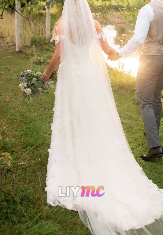 Sweetheart Spaghetti Straps Appliques Tulle A-Line Wedding Dress