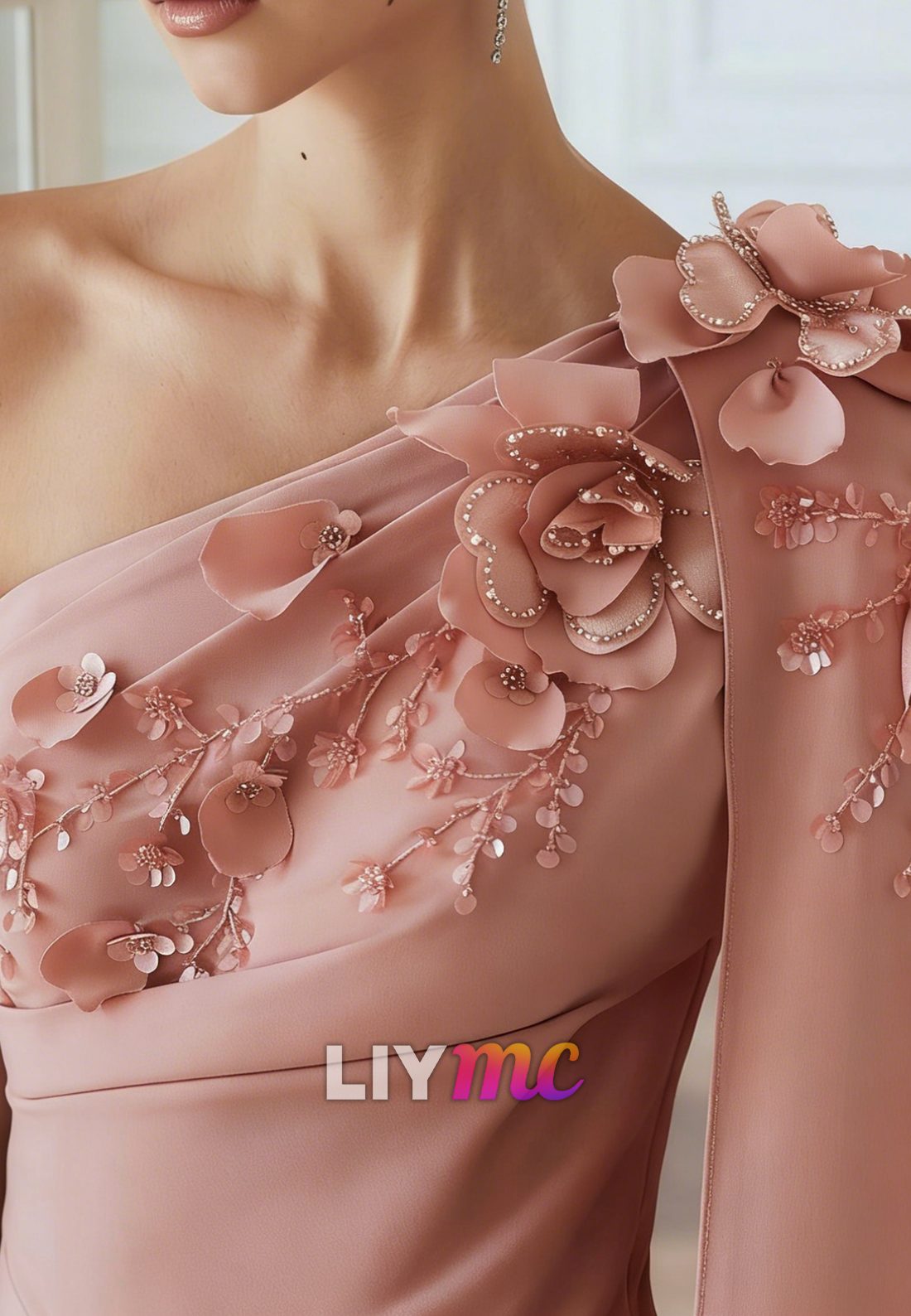 Make an unforgettable entrance in this glamorous mermaid evening dress featuring a striking one-shoulder silhouette and exquisite appliqué detailing. The asymmetrical neckline creates dramatic visual interest and contemporary allure, while intricate appliqués enhance the bodice with refined artistry. The mermaid cut hugs the body elegantly before flowing into a graceful flare at the hem, creating a show-stopping silhouette that commands attention. Perfect for formal galas, upscale weddings, and evening celebrations, this dress combines architectural sophistication with luxurious styling, ensuring you radiate confidence and timeless glamour throughout the night.