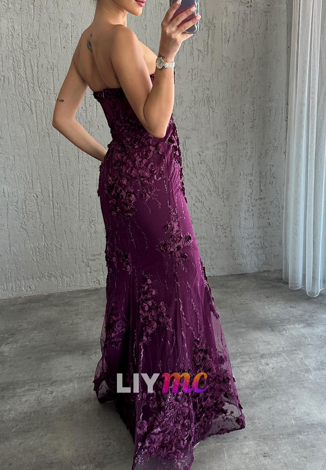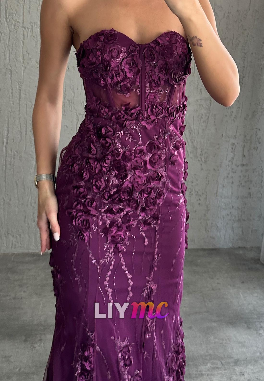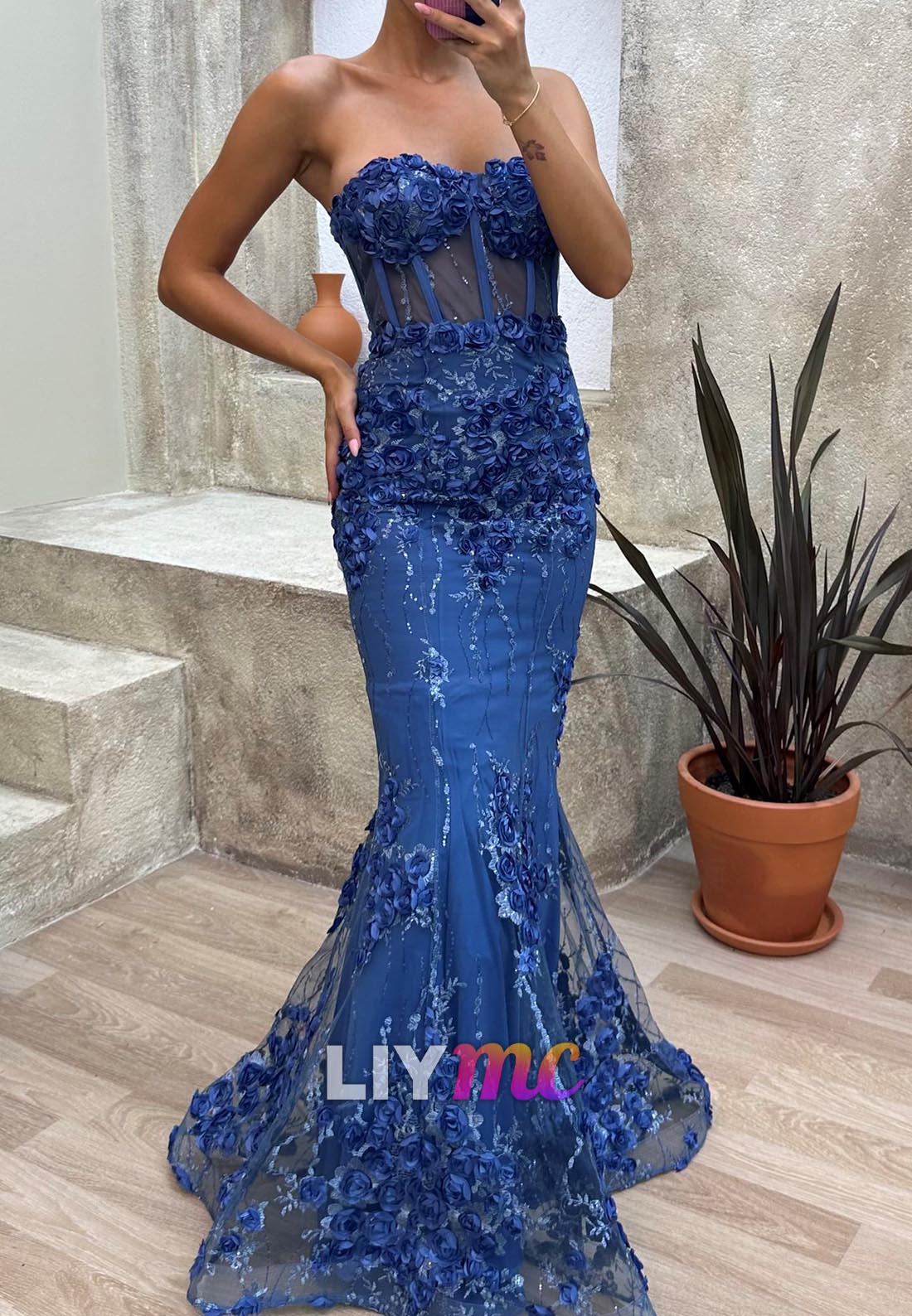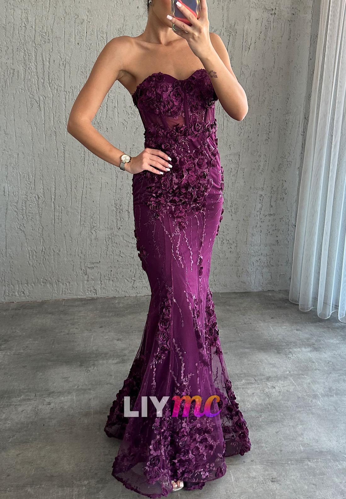 Sweetheart Sleeveless Floral Appliqeus Mermaid Prom Dress